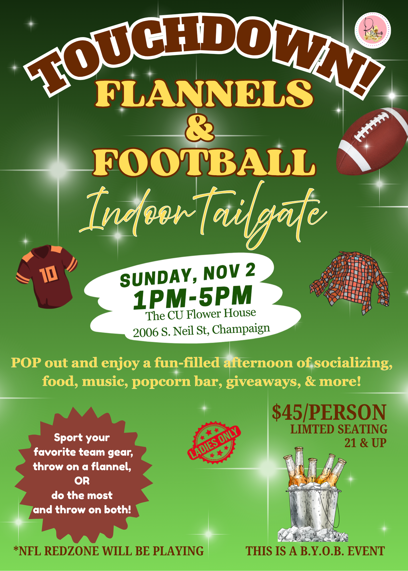 The event is BYOB – Ladies Only – NFL Redzone will be on!